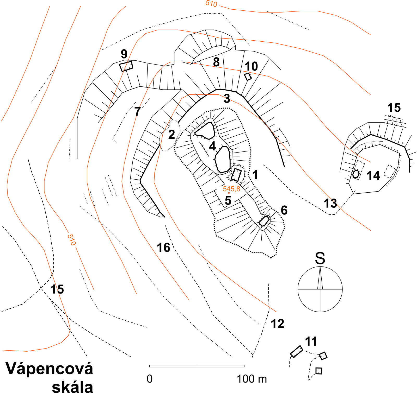 severozápadní ostrožně Lipového kopce, zvané „Vápencová skála“. Obšírná diskuze, zaměřená na výzkum zaniklých středověkých vesnic a šlechtických sídel, řešila problematiku jak archeologickou, tak historickou. Zatím co rozestavěné feudální sídlo náleží s největší pravděpodobností do období pozdního středověku a nebylo již nikdy dostavěno, Dvorec v podhradí lze historicky spojit s roky 1406 a 1437 a datovat archeologickými nálezy ještě do 15.-17. století, kdy byla činná i vápenická dílna na „Vápencové skále“, využívající surovinových zásob zbylých po nedokončené středověké stavbě. Vesnice tvořící geograficky nejbližší hospodářské zázemí projektovaného „hradu“ (Budkovany, Bystřec, Dvorce) zanikly v 15. století v rámci markraběcích válek během násilných střetů mezi Holštejny a Kunštáty. Jediný Dvorec pak mohl válečné události přečkat a působit od 16. století jako součást kotvrdovické a následně v 17. století i jedovnické stavební huti. Závěrečnou etapu existence huti dokumentuje asi nejlépe vápenka disponující jámovým milířištěm, které bylo radiometricky datováno do rozmezí 17. a 20. století.