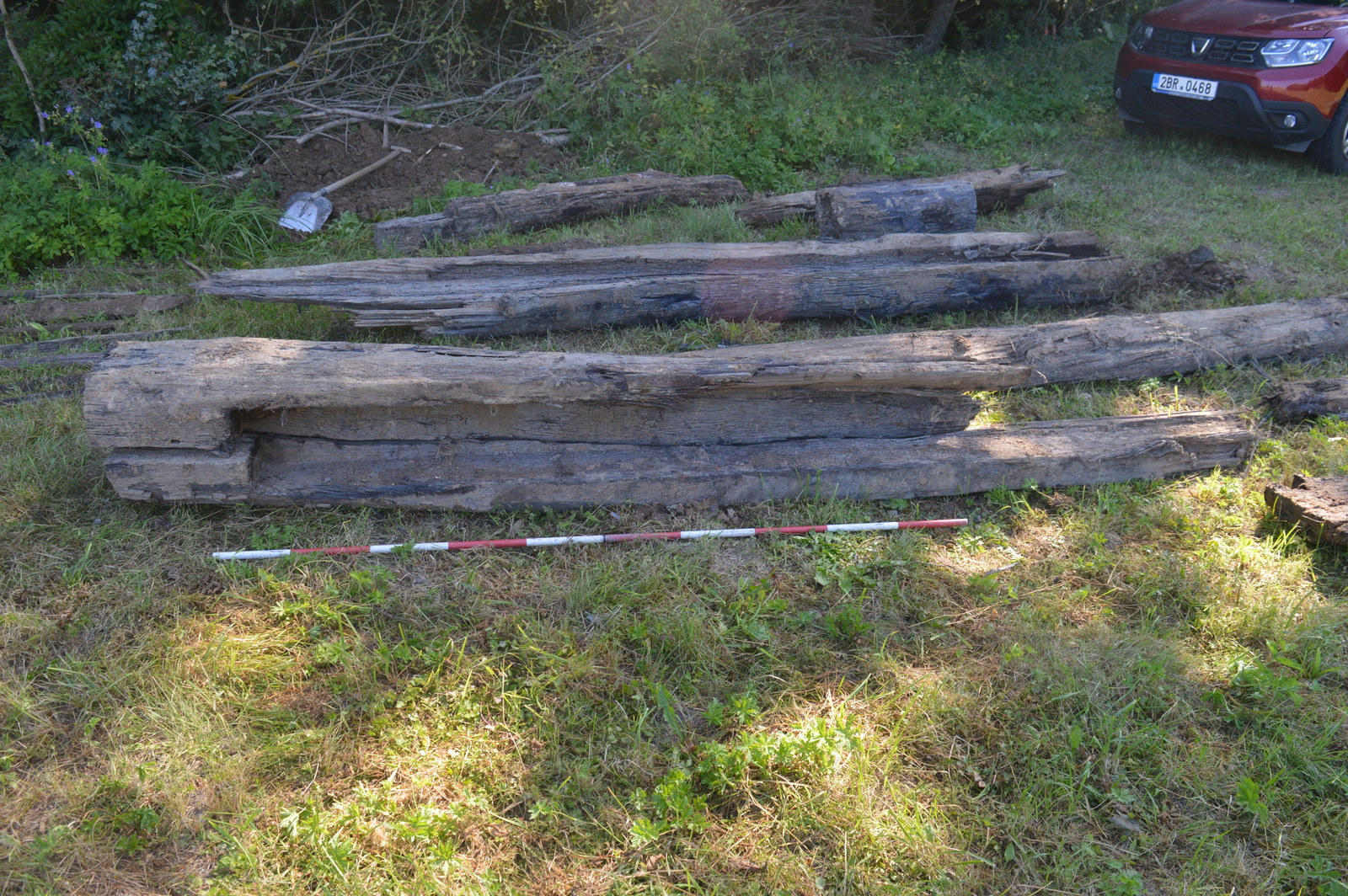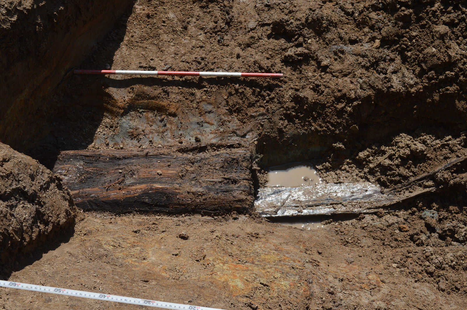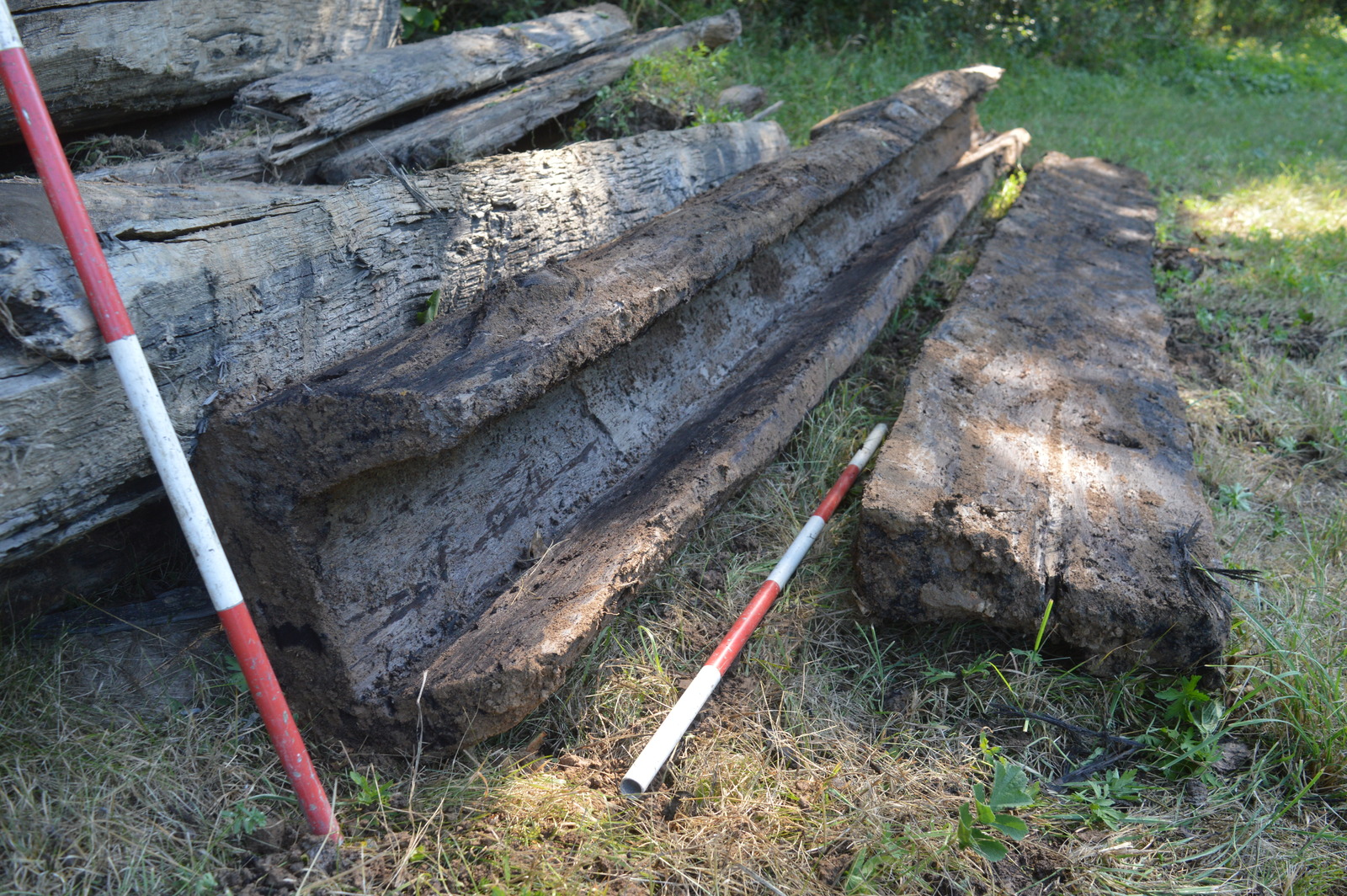 Velkým překvapením proto bylo, že při obnově staré tůně zuby bagru porušily v místech někdejší hráze podstatně starší konstrukci dřevěného výpustného zařízení. Dřevěné prvky výpusti tvořila asi 4 m dlouhá dlabaná dřevěná koryta s víky, vyrobená z kmenů stromů (dub/jedle?), která byla k sobě spojena železnými kramlemi. Získaná informace ze záchranného výzkumu je navíc cenná v tom, že části výpustných rour se podařilo zachytit ještě v původních pozicích v tělese hráze. Zlomky keramiky, které byly získány ze dna rybníka a náspu hráze naznačují raně novověký původ díla (16.-19. stol.?), více však napoví přírodovědné analýzy z odebraných dendrologických a biostratigrafických vzorků a podložních geologických vrstev. Doplňujícím poznatkem k provozovaným lesním řemeslům je existence ohniště a plošiny dřevouhelného milířiště, které přiléhalo k historické cestě vedoucí po temeni rybniční hráze.