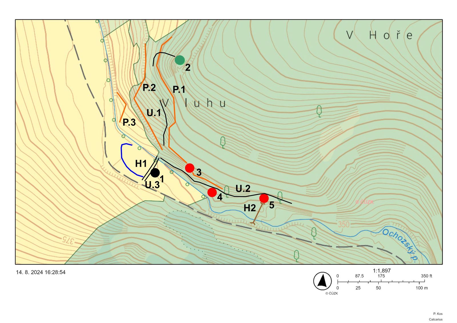 propustkem, po němž vedla na temeno hráze stará vozová cesta zpevněná vápencovým štěrkem, který byl sbírán a místy i lámán v nedalekém svahu Hory. Příměs odpadu z výroby páleného vápna prozradila, že cesta sloužila nejen k dopravě štěrku, ale i ke svozu výpalku ze tří vápenických pecí, jejichž nepatrné pozůstatky leží dosud v nízkém a vyšším terasním stupni historické ochozské hospodářské plužiny na levém břehu Ochozského potoka.