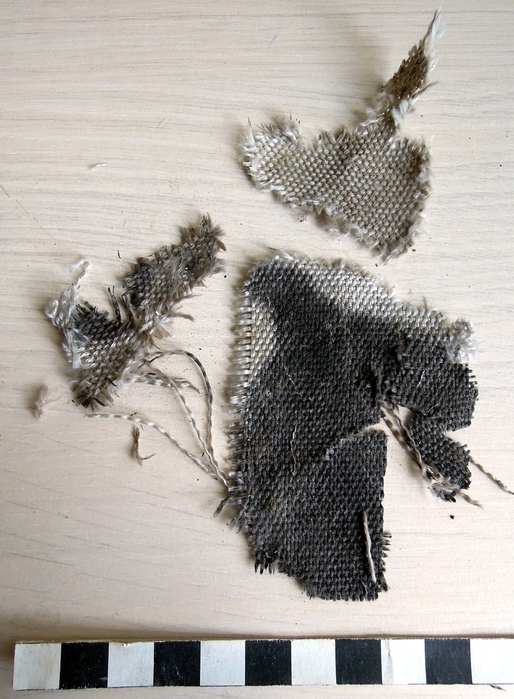 Útržky azbestové tkaniny sloužící jako tepelná izolace motoru