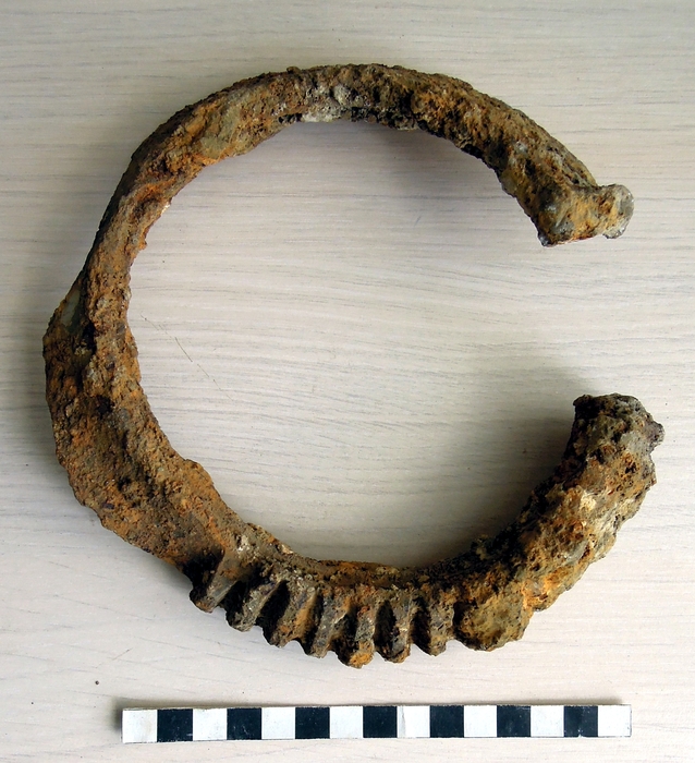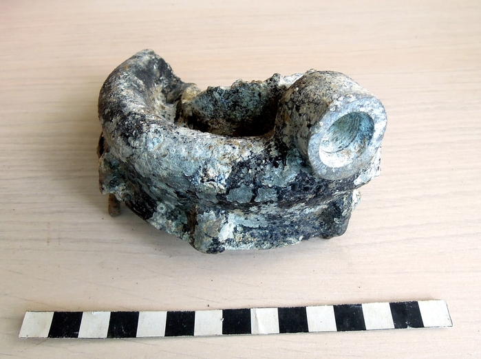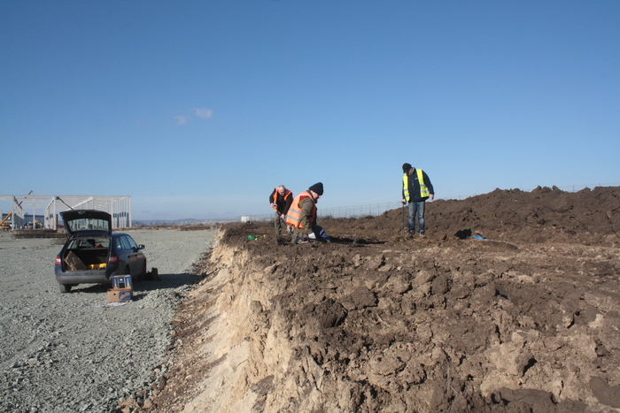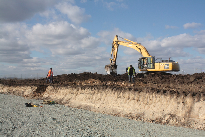 Pracovní snímek – místo dopadu patrné v profilu výkopu