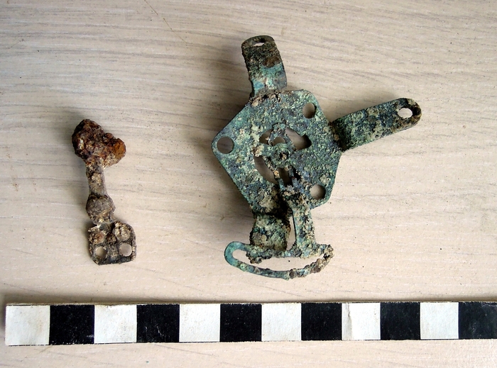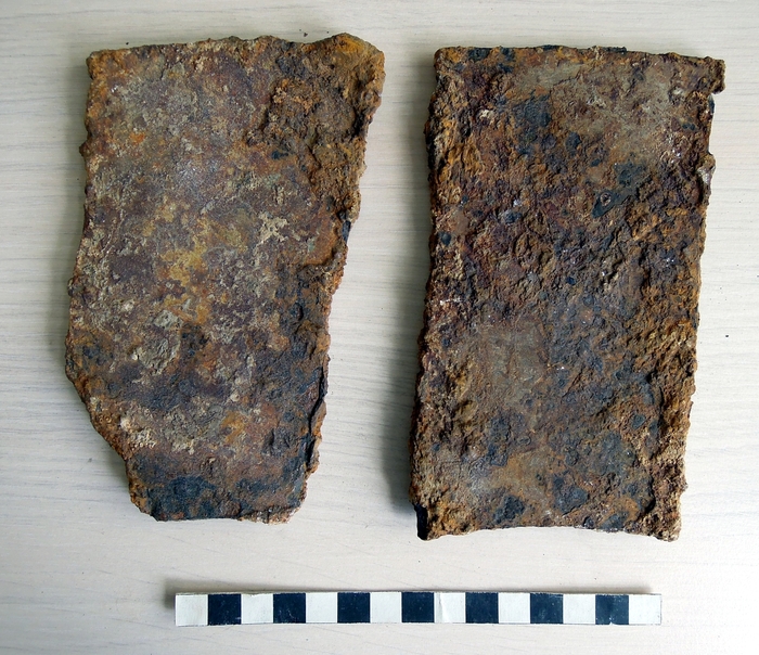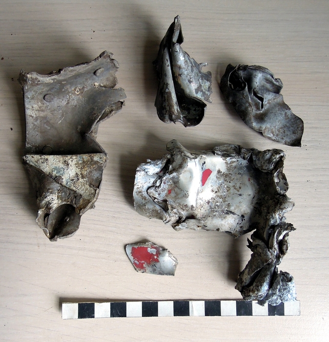 Deformované duralové plechy se zbytky původní barvy
